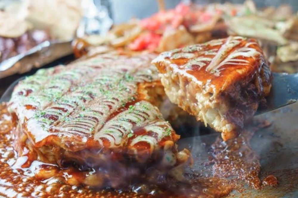 外はカリッ、中はふわっと食感の、鉄板で焼き上げる本場のお好み焼きを出来たてでお届けします。